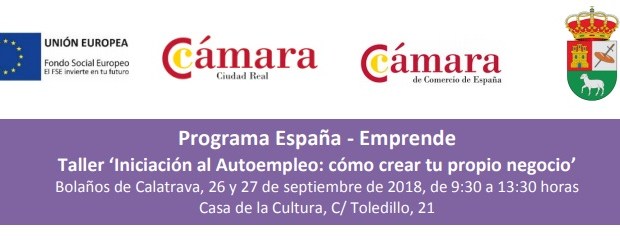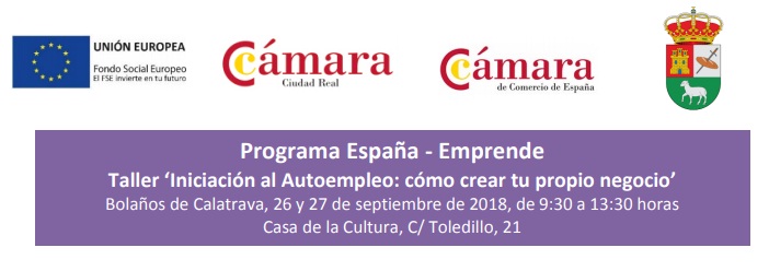 Estás pensado en montar una empresa y no sabes cómo, tienes una idea de negocio y no sabes cómo darle forma, esta es una buena oportunidad. La Cámara de Comercio de Ciudad Real en colaboración con el Ayuntamiento de Bolaños, a través de su Escuela de Empleo y Emprendimiento impartirá los días 26 y 27 de septiembre en Bolaños este taller de 8 horas de formación presenciales, las inscripciones se pueden enviar al Centro de la Mujer de Bolaños a la siguiente dirección de correo: