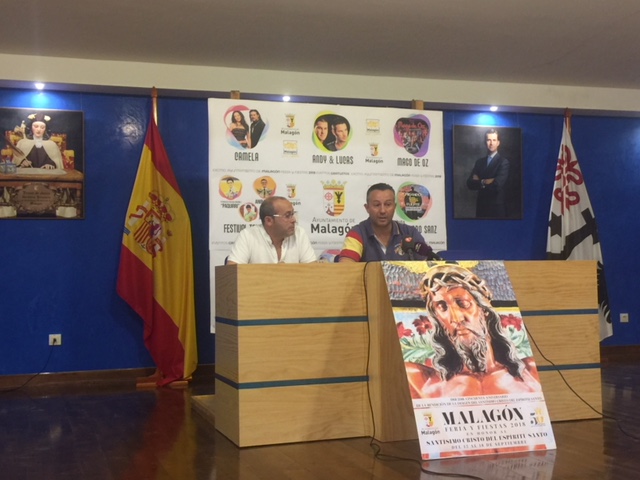 En la mañana deL 30 de agosto el alcalde de Malagón, Adrián Fernández Herguido, junto al Concejal de Festejos del consistorio, Afrodisio Santos Santos, han presentado el cartel del programa de la Feria y Fiestas 2018 en honor al Santísimo Cristo del Espíritu Santo.