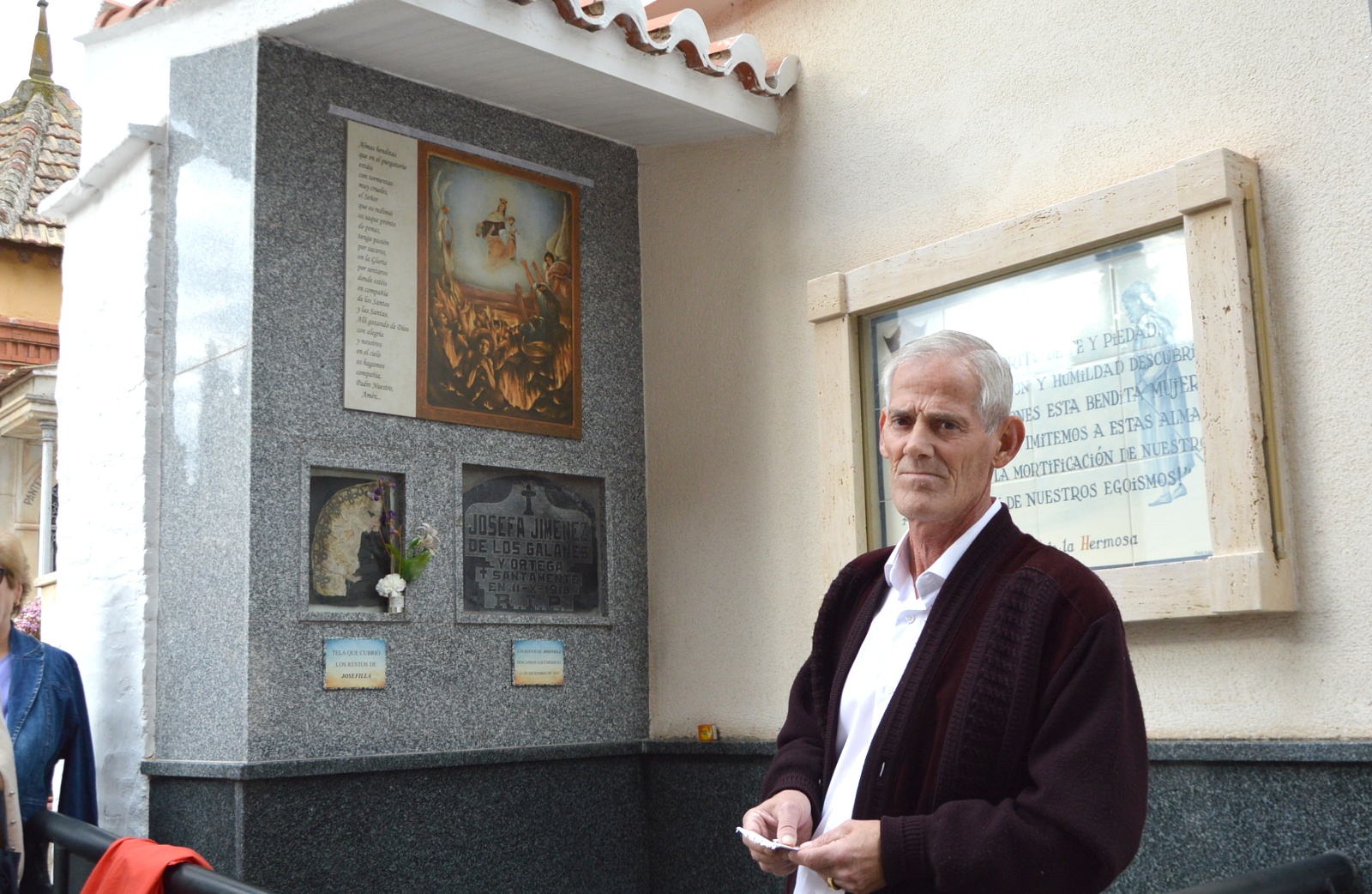 Los devotos de Josefilla se han reunido este jueves en el Cementerio Municipal para, coincidiendo con la fecha exacta del centenario de su fallecimiento, descubrir una nueva placa en su honor. Este recordatorio combina una reproducción del cuadro sobre las ánimas y el purgatorio que pintó Juan D´Opazo para la parroquia de San Pedro y una oración pidiendo por ellas.