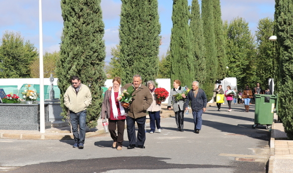 El sol y temperaturas más suaves han acompañado en una jornada en la que cientos de vecinos de la localidad han acudido hasta el Cementerio para visitar a sus seres queridos fallecidos. Debido a la celebración del Día de Todos los Santos, el camposanto ha lucido repleto de flores que adornaban tumbas, nichos y panteones por doquier.