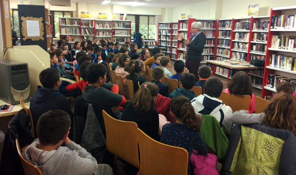 El escritor Alfredo Gómez Cerdá charla con los escolares daimieleños