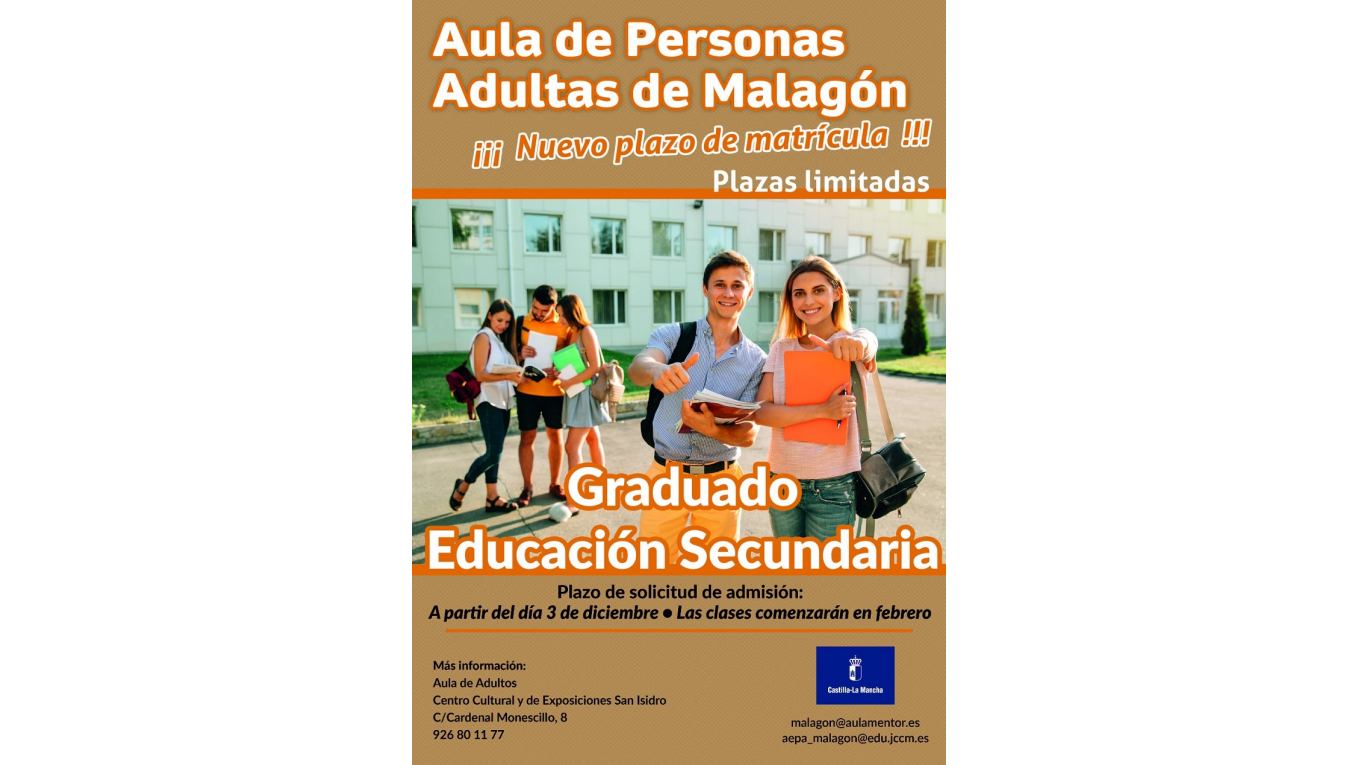 Aula de personas adultas de Malagón: nuevo plazo de matrícula Publicado en 30 noviembre, 2018 por alcaldesapiedecalle en CIUDAD REAL, Malagón, MUNICIPIOS, SOCIEDAD // 0 Comentarios Comparte esto: Compartir en X (Se abre en una ventana nueva) X Comparte en Facebook (Se abre en una ventana nueva) Facebook Me gusta Cargando... Relacionado