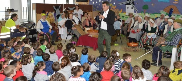 El alcalde de Daimiel, Leopoldo Sierra, ha acompañado un año más a los “grandes artistas” del Taller de Memoria y del Servicio de Estancias Diurnas, que durante esta semana representan en el Centro de Mayores la obra “Ya es Navidad” para los alumnos más pequeños de los centros educativos. En esta ocasión, el público llegaba de los colegios Infante Don Felipe, San Isidro, La Espinosa y Calatrava, como han dejado claro durante la bienvenida del sacerdote y narrador de la historia, Luis Eduardo Molina.