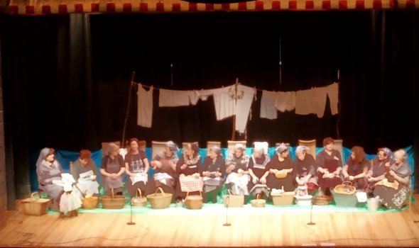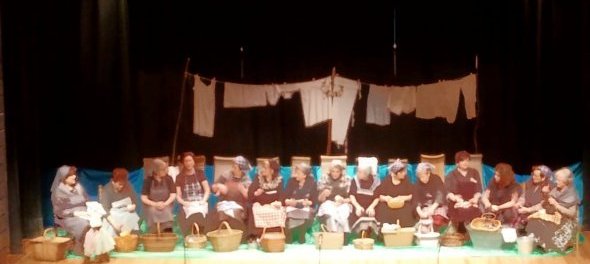 El grupo de teatro “Memorias” del Centro de Mayores representó el pasado viernes 28 en el Ayala ante cerca de 300 personas la obra “Las Lavanderas”, ambientada en la vida de las mujeres que lavaban la ropa en el río en el siglo XIX y principios del XX. En esta actuación están implicadas 17 mujeres. El dinero recaudado por la venta de las entradas se va a destinar a la asociación HEPA, que asiste a las familias de niños con enfermedades hepáticas o con trasplantes hepáticos.
