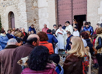 Tras la eucaristía dominical, el párroco Juan Serna Cruz bendecía ante el templo los animales que los fieles llevaron con tal motivo, en una jornada no del todo desapacible, pero de fresco ambiente que, sin embargo, no enfrió el ánimo de los asistentes.