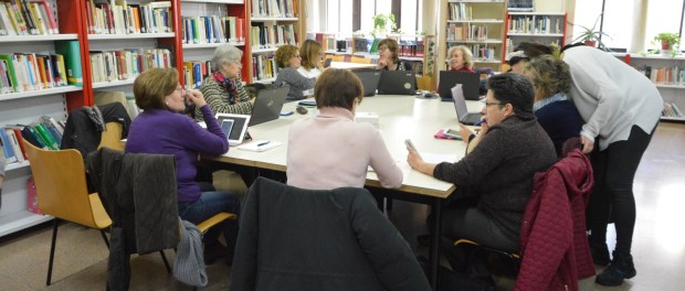 Los participantes del curso para aprender a utilizar el libro electrónico han puesto en práctica este viernes en la Biblioteca Municipal la teoría que conocieron dos días antes. Bajo la tutela de la monitora del Centro de Internet, Elisabeth López-Tercero, y de la bibliotecaria, Laura García-Carpintero, han accedido a las plataformas públicas de préstamo y se han descargado algunos libros en los dispositivos. Una experiencia novedosa para muchas de las alumnas que valoraban muy positivamente la posibilidad de manejar varias lecturas a la vez y poder saltar de una a otra con tanta facilidad, como señalaban a los micrófonos de Radio Daimiel.
