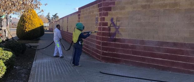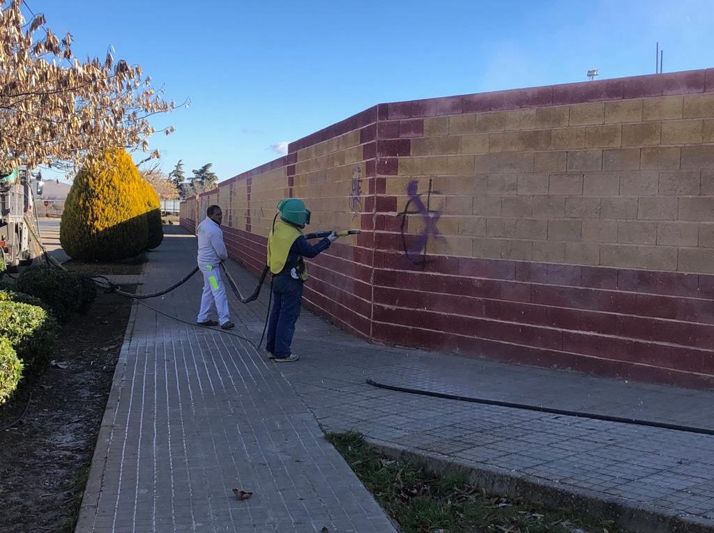 Una campaña de limpieza que redundará en beneficio de la estética de nuestro pueblo y que borrará con agua a presión las pintadas de mal gusto que se han realizado en edificios municipales.
