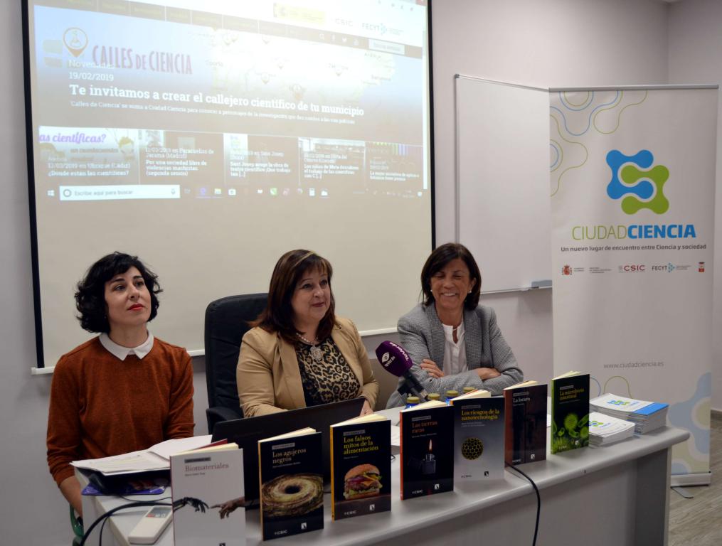 En la presentación estuvieron la alcaldesa Encarnación Medina Juárez; la directora de la FECYT, Paloma Domingo; y la coordinadora de proyectos del Área de Cultura Científica del CSIC, Carmen Guerrero.