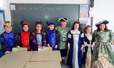 Al llegar al corazón de Aldea del Rey, los alumnos han compartido toda una puesta en escena, representando los trabajos, personajes del celebérrimo pintor de Fuendetodos y bailes de época, delante de un buen número de familiares que se habían dado cita en la Plaza de España, a la que habían llegado acompañados en todo momento por la Policía Local que abría el cortejo del desfile.