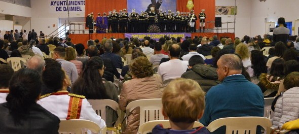 Cada agrupación interpretó en la mañana del jueves cuatro marchas sobre el escenario, entre ellas: ‘Al Señor del rescate’, ‘Oh Pecador’ o ‘Estrella Reina del Cielo’. Además, la banda local sorprendió al público en su último tema como colofón al certamen, ‘La Lanzada’, de Juan Carlos Martín Consuegra, uno de los directores de la formación colorá, a la que la daimieleña Ana Isabel García-Moreno ha puesto voz y letra.