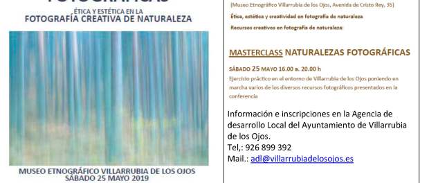 Se trata de un curso de fotografía creativa en la naturaleza que tendrá lugar en el Centro Joven de la localidad en horario de 11 a 14 horas, la conferencia, y de 16 a 20 horas, la masterclass.