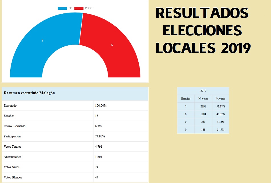 El Partido Popular de Malagón con el actual alcalde en funciones, Adrián Fernández Herguido a la cabeza, ha vuelto a ganar las elecciones en Malagón. A continuación os ofrecemos en formato JPEG, los resultados obtenidos por los diferentes partidos que se presentaron a estas elecciones.