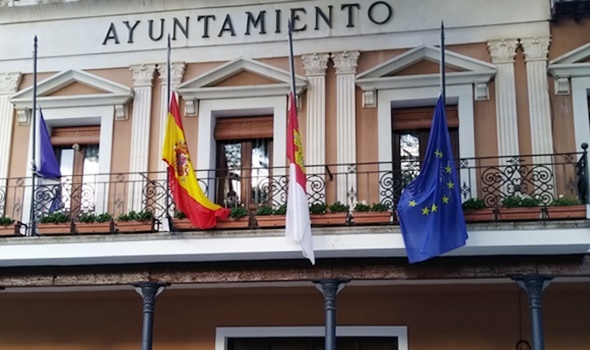Daimiel. Las banderas del Ayuntamiento de Daimiel ondean a media asta por el fallecimiento de Apolonio Díaz de Mera