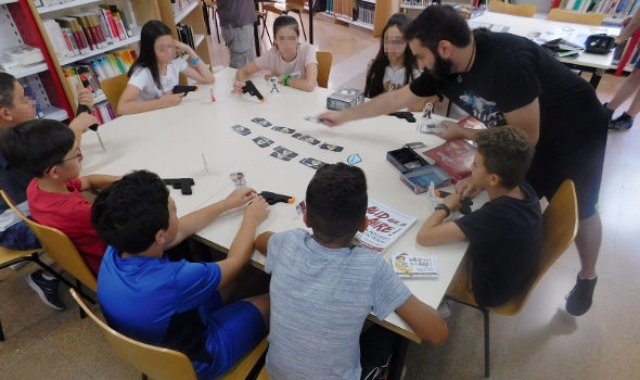 La Biblioteca Municipal se ha convertido durante la mañana del viernes en un espacio de juego, donde el misterio y los crímenes se convirtieron en los protagonistas para celebrar este novedoso Día del Juego. Para ello, se contó con la colaboración de la asociación juvenil ‘Puerta de Hades’, cuyos miembros fueron los encargados de convertir a todos los participantes en detectives. Juegos de mesa y rol basados en la novela negra para dar continuidad así al punto de interés de la sala de adultos.