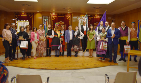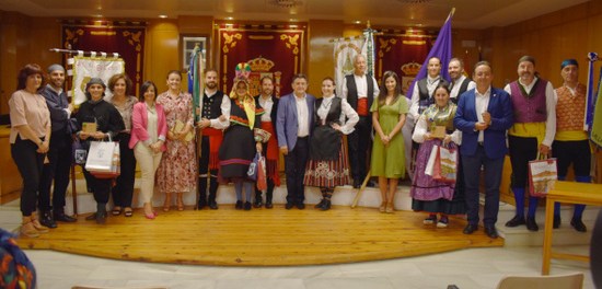 Previamente, los cuatros grupos realizaron un pasacalles desde la estación de autobuses hasta el Salón de Plenos del Ayuntamiento de Daimiel, despertando la curiosidad de vecinos y turistas a su paso. Ya en el Consistorio, tuvo lugar la recepción oficial. Allí, el alcalde de Daimiel, Leopoldo Sierra, acompañado de gran parte de la Corporación Municipal, dio la bienvenida a los grupos y se procedió al tradicional intercambio de obsequios.