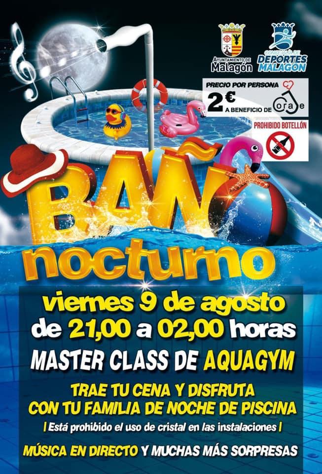 Con esta iniciativa la Concejalía de Deportes del Ayuntamiento de Malagón quiere incentivar el ocio nocturno abriendo las puertas de la Piscina Municipal en un horario fuera del habitual en Malagón, el deporte con Master Class de Aquagym y una enorme labor social, recabando fondos para nuestros chicos de CORAJE.
