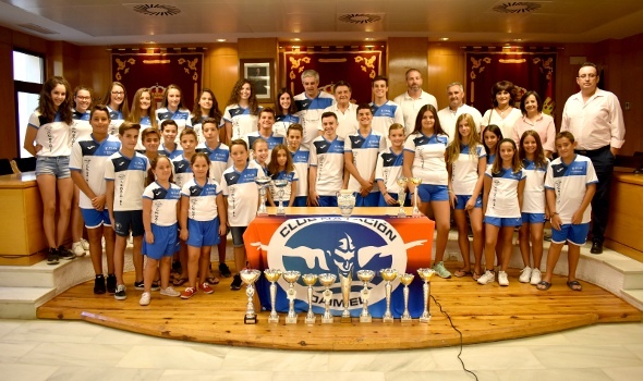 El CN Daimiel volvió a recibir este martes la felicitación de la Corporación Municipal tras una exitosa temporada en lo colectivo, coronada este verano por las seis medallas nacionales que cosecharon Laura Cabanes en el campeonato alevín (tres oros y una plata) y Alejandro García de la Galana (dos bronces) en el campeonato infantil. El alcalde, Leopoldo Sierra, fue el encargado de trasladar esa enhorabuena en una recepción donde se mostraron todos los trofeos cosechados en este 2019 y a la que asistió una amplía representación de nadadores, acompañados de sus padres.