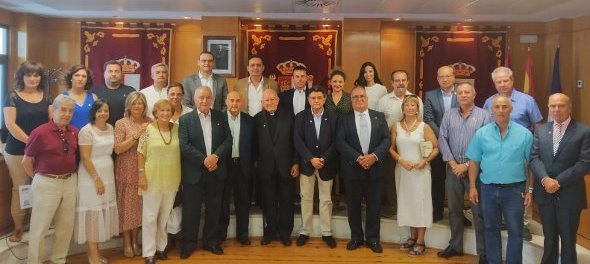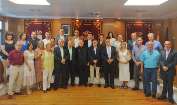 La tradicional recepción de la Corporación Municipal a los daimieleños ausentes en Feria y Fiestas se llevó a cabo el pasado lunes en el Salón de Plenos del Ayuntamiento. Juan Blanco, Tarsicio González y Tobías Díaz, presidentes de las asociaciones de residentes en Madrid, Valencia y Vilassar de Mar estuvieron presentes en un acto al que también se unió el presidente de la Hermandad de la Virgen de las Cruces, Paulino García de la Camacha, y el sacerdote daimieleño, Antonio Astillero.