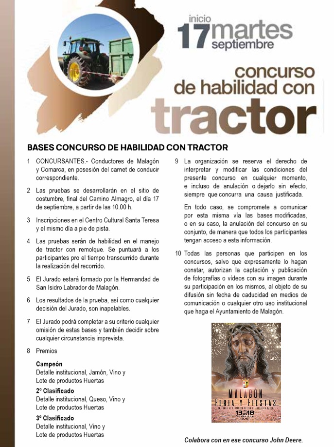 Malagón. Bases y Concursos Feria 2019: Concurso de Habilidad con tractor Publicado en 5 septiembre, 2019 por alcaldesapiedecalle en CIUDAD REAL, Malagón, MUNICIPIOS, SOCIEDAD // 0 Comentarios Comparte esto: Compartir en X (Se abre en una ventana nueva) X Comparte en Facebook (Se abre en una ventana nueva) Facebook Me gusta Cargando... Relacionado