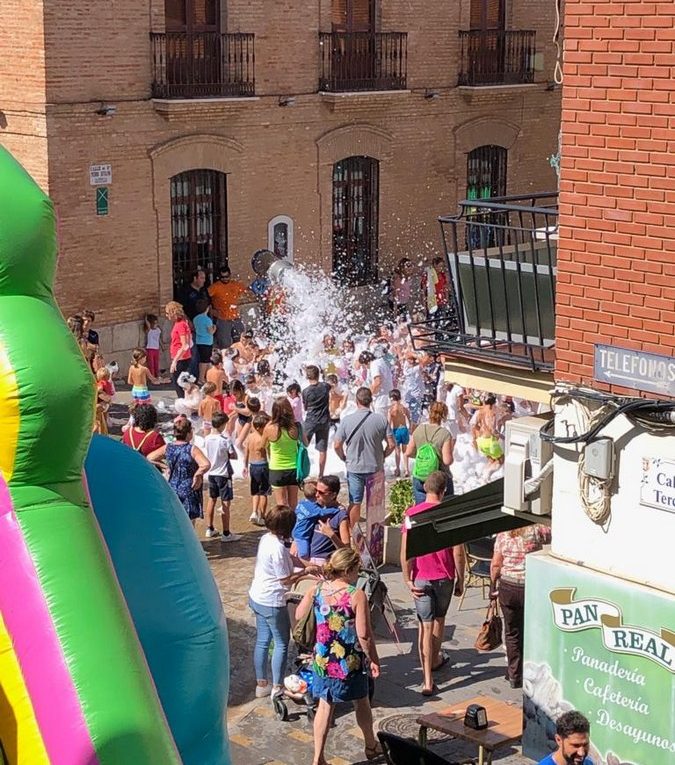 Es por este motivo que se diseñaron muchas actividades en torno a nuestros niños: En la cruz verde, desde primera hora de la mañana se desplegaron diversos castillos hinchables, con toboganes de agua. También se realizó una fiesta de la espuma, en la que participaron todos los niños.