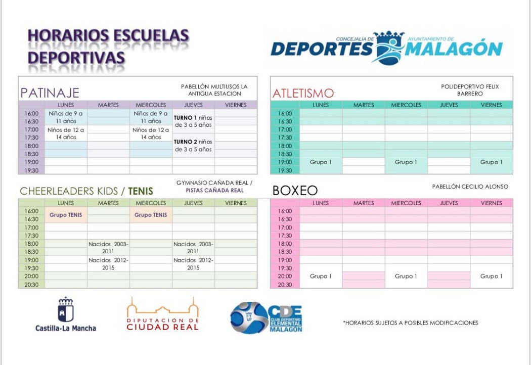 Concejalía de Deportes de Malagón: Horarios Escuelas Deportivas Publicado en 24 septiembre, 2019 por alcaldesapiedecalle en CIUDAD REAL, DEPORTES, Malagón, MUNICIPIOS // 0 Comentarios Comparte esto: Compartir en X (Se abre en una ventana nueva) X Comparte en Facebook (Se abre en una ventana nueva) Facebook Me gusta Cargando... Relacionado