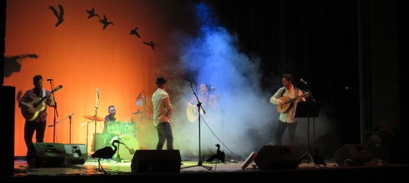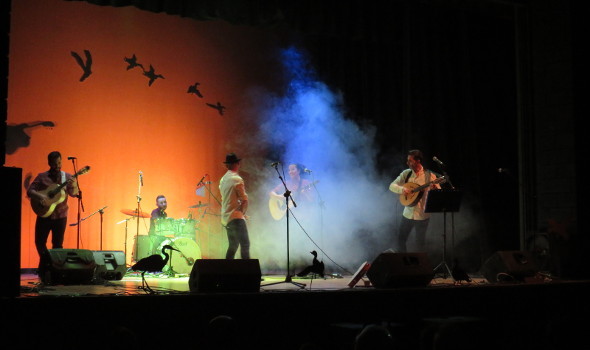 La noche del sábado comenzó con el escenario impregnado del estilo celta de Ensemble Anxamás. Gaitas, violines, clarinetes, entre otros instrumentos de cuerda y percusión arrancaron los aplausos del público para un grupo que nació en el 2002 a raíz de la escuela de música de Arenas de San Pedro, de donde son todos naturales. Un repertorio basado en canciones propias, mezcladas con canciones tradicionales españolas, irlandesas, etc., que los espectadores disfrutaron durante más de 45 minutos.