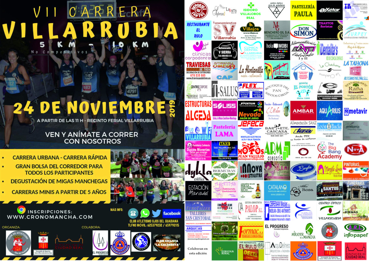 El Club de Atletismo Ojos del Guadiana de Villarrubia de los Ojos (Ciudad Real) organiza, en colaboración con el Ayuntamiento villarrubiero, la 7ª Carrera Popular de Villarrubia de los Ojos el próximo 24 de noviembre, en un circuito totalmente urbano de 5 km.