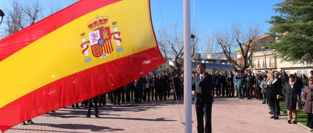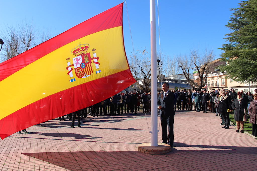 Bajo los acordes del himno nacional, Adrián Fernández Herguido ha izado la bandera. Posteriormente un policía local y una agente de la guardia civil han portado una corona de laurel y han depositado la ofrenda en el monolito de las victimas del terrorismo situado en la plaza que lleva su nombre.