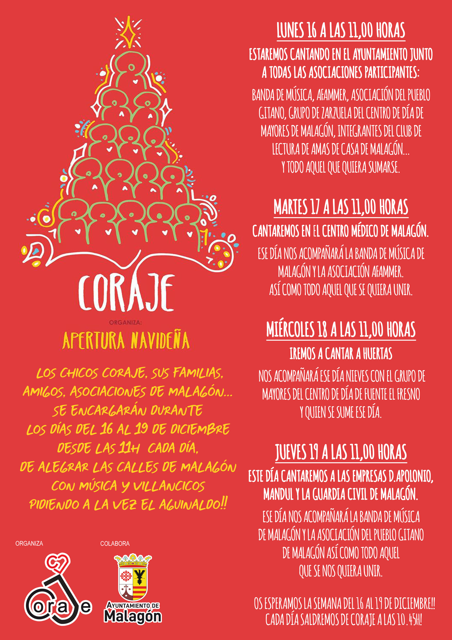 Malagón. Coraje. Programa apertura navideña 2019 Publicado en 11 diciembre, 2019 por alcaldesapiedecalle en CIUDAD REAL, Malagón, MUNICIPIOS, SOCIEDAD // 0 Comentarios Comparte esto: Compartir en X (Se abre en una ventana nueva) X Comparte en Facebook (Se abre en una ventana nueva) Facebook Me gusta Cargando... Relacionado