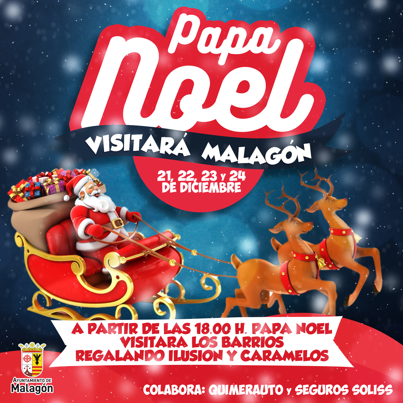 Papa Noel visitará Malagón del 21 al 24 de diciembre Publicado en 17 diciembre, 2019 por alcaldesapiedecalle en CIUDAD REAL, Malagón, MUNICIPIOS, SOCIEDAD // 0 Comentarios Comparte esto: Compartir en X (Se abre en una ventana nueva) X Comparte en Facebook (Se abre en una ventana nueva) Facebook Me gusta Cargando... Relacionado