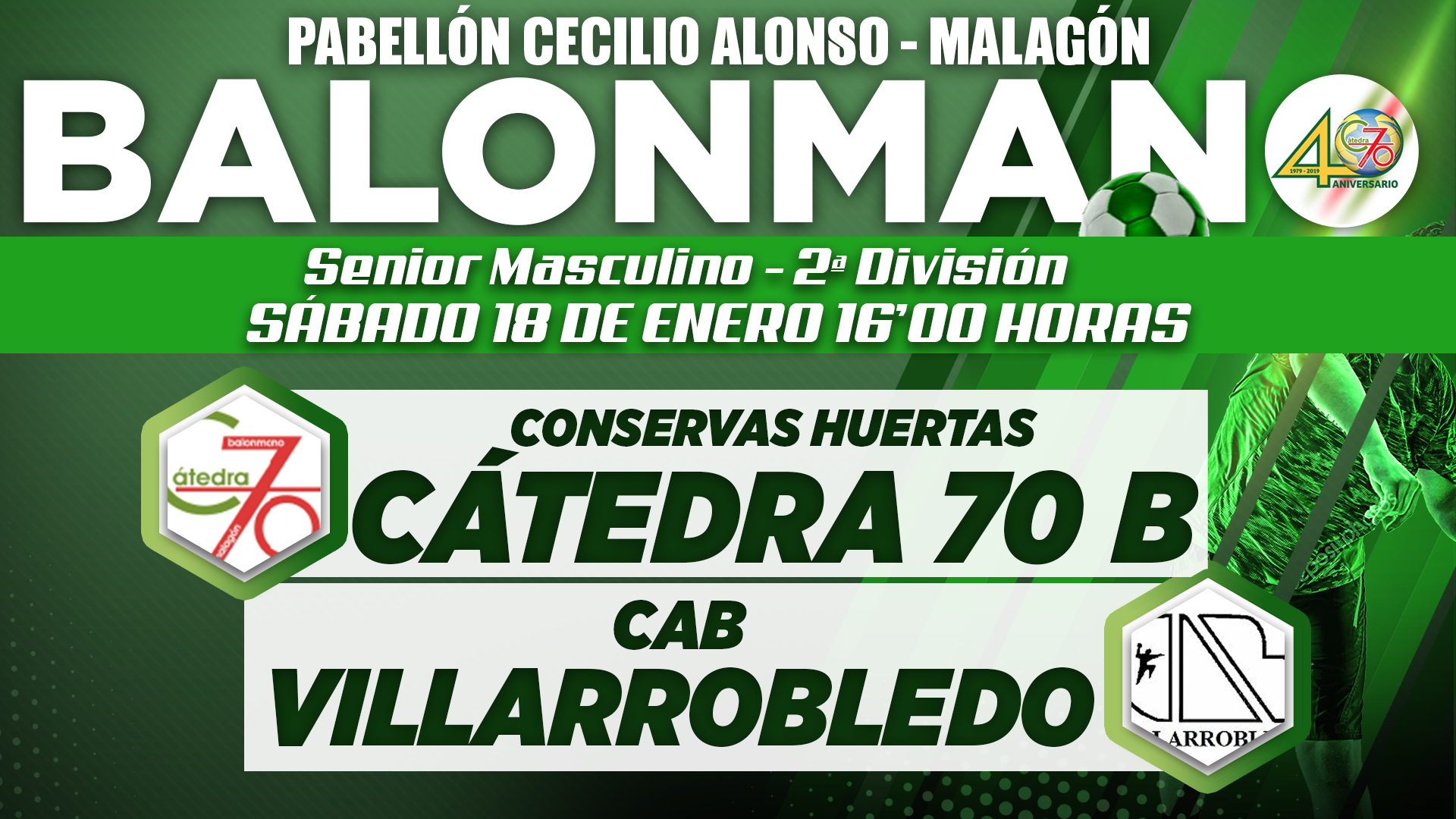 Malagón. Balonmano Senior Masculino 2ª División. Cátedra 70 B – CAB Villarobledo, el sábado a las 16:00 horas Publicado en 17 enero, 2020 por alcaldesapiedecalle en CIUDAD REAL, DEPORTES, Malagón, MUNICIPIOS // 0 Comentarios Comparte esto: Compartir en X (Se abre en una ventana nueva) X Comparte en Facebook (Se abre en una ventana nueva) Facebook Me gusta Cargando... Relacionado