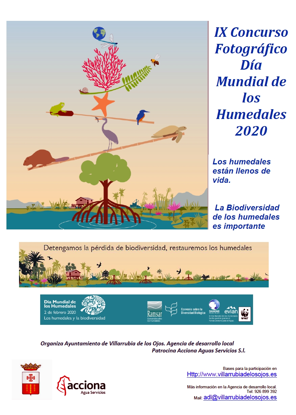 Los humedales están llenos de vida. La Biodiversidad de los Humedales es importante, con este lema, el Ayuntamiento de Villarrubia de los Ojos (Ciudad Real), a través de su Agencia de Desarrollo Local, convoca la 9ª edición del Concurso Fotográfico Día Mundial de los Humedales, de ámbito nacional, certamen patrocinado por Acciona.
