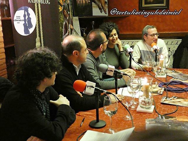 Andrés Márquez Reguillos, Diego Clemente Espinosa, Elvira Arroyo Sánchez y Pedro González Mohíno Hidalgo fueron los contertulios en esta ocasión. Todos compartieron sus opiniones en relación a cuestiones como sus motivaciones para escribir sobre Semana Santa, medios en los que han participado, sobre la dicotomía entre texto e imagen, acerca de la crítica o aceptación de sus publicaciones, o la dificultad que supone enfrentarse a un papel en blanco.