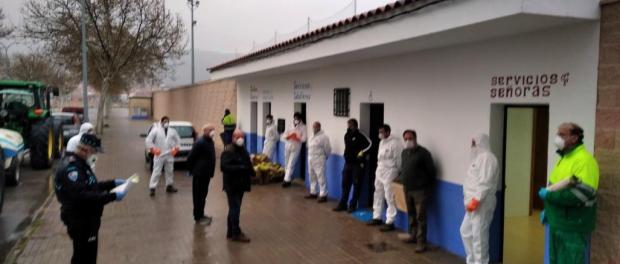 Agricultores de El Progreso y otros de Villarrubia de los Ojos colaboran con el Ayuntamiento en labores de desinfección