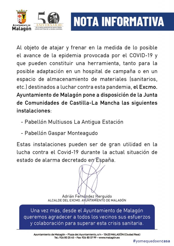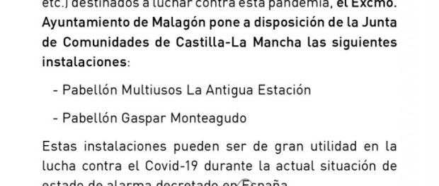 El Ayuntamiento de Malagón pone a disposición de la Junta de Comunidades de Castilla la Mancha el Pabellón Multiusos «Antigua Estación» y el Pabellón Cubierto «Gaspar Monteagudo» Publicado en 7 abril, 2020 por alcaldesapiedecalle en CIUDAD REAL, DESTACADOS, Malagón, MUNICIPIOS, SOCIEDAD // 0 Comentarios Comparte esto: Compartir en X (Se abre en una ventana nueva) X Comparte en Facebook (Se abre en una ventana nueva) Facebook Me gusta Cargando... Relacionado
