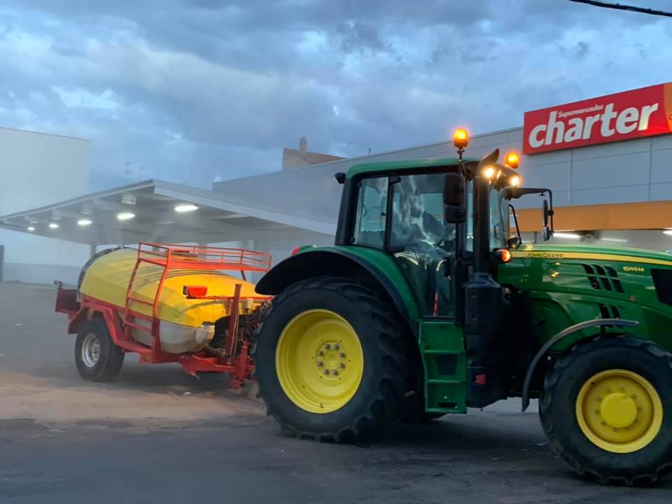 Una noche más, nuestros agricultores se han enfundado sus trajes y accesorios de seguridad para continuar con la desinfección de nuestro pueblo y así con las últimas luces del día y bajo la supervisión del alcalde de Malagón, Adrián Fernández Herguido y el concejal de Servicios Múltiples, Afrosidio Santos Santos han salido desde la Plaza de Toros para volver un día más a trabajar con la desinfección de Malagón.