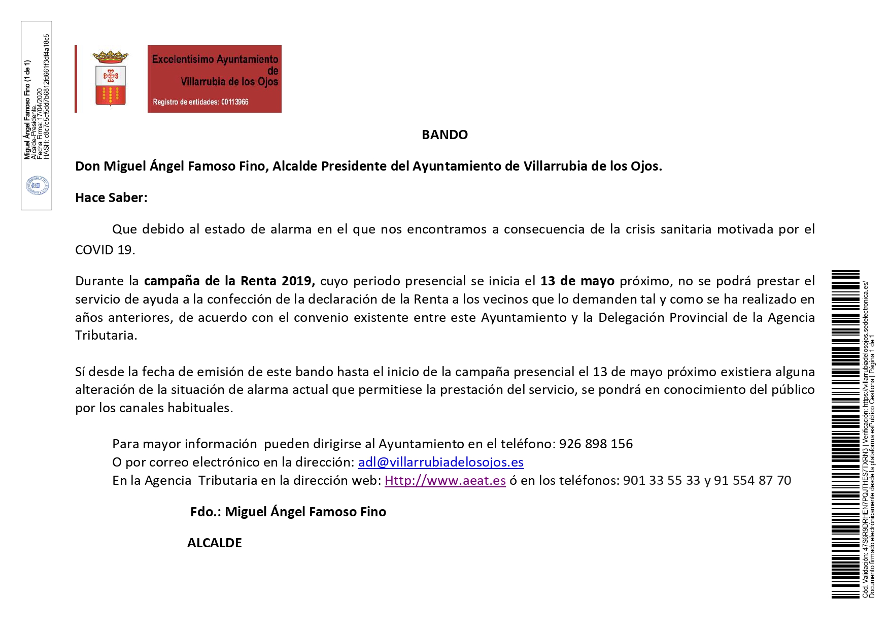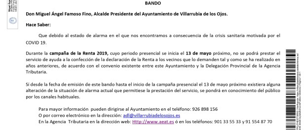 Villarrubia de los Ojos. Bando sobre Campaña Renta 2019 Publicado en 17 abril, 2020 por alcaldesapiedecalle en CIUDAD REAL, DESTACADOS, MUNICIPIOS, SOCIEDAD, Villarrubia de los Ojos // 0 Comentarios Descargar el Bando aquí. Comparte esto: Compartir en X (Se abre en una ventana nueva) X Comparte en Facebook (Se abre en una ventana nueva) Facebook Me gusta Cargando... Relacionado