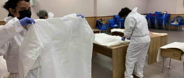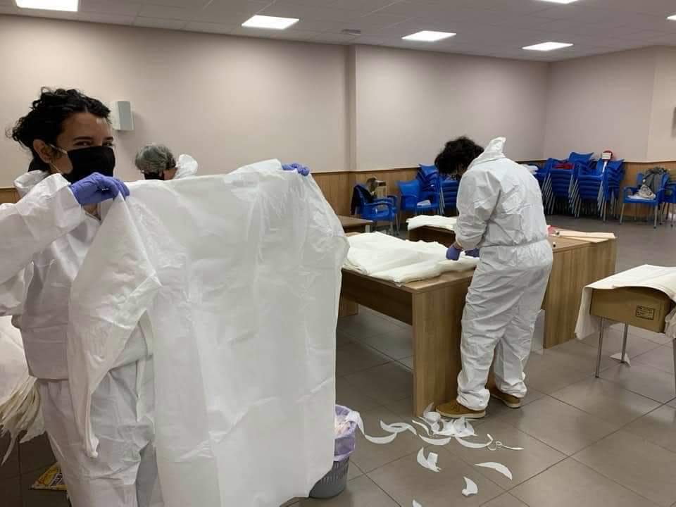Villarrubia de los Ojos (Ciudad Real) sigue con más acciones de solidaridad y de combate del Covid19, durante el estado de Alarma. Tras la distribución de mascarillas que tuvo lugar a finales de marzo, ahora no solo se están repartiendo más de 250 batas de protección a Residencia de Mayores y Centro de Salud, sino también a servicios esenciales y empresas de la localidad. Además se ofrece lavandería gratuita para los mayores, mientras que siguen las labores de desinfección, no sólo con ayuda de los agricultores sino de GEACAM. Operarios de la Dipuración y del Ejército.