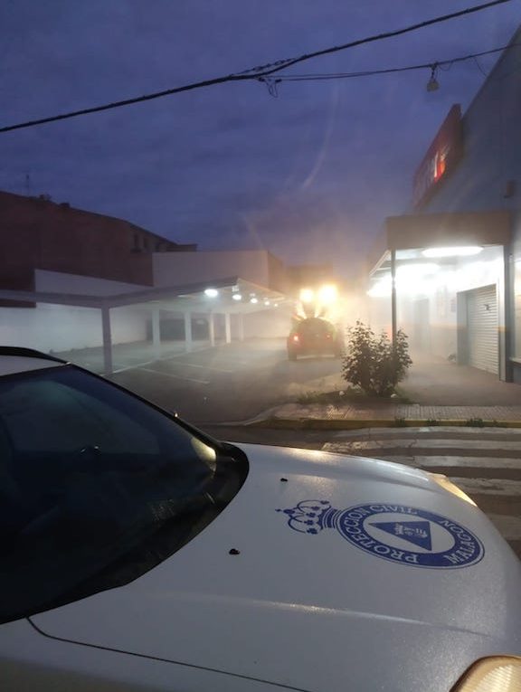 Tal y como estaba anunciado los agricultores de Malagón han vuelto a salir hoy en Malagón para desinfectar las calles de nuestro pueblo.