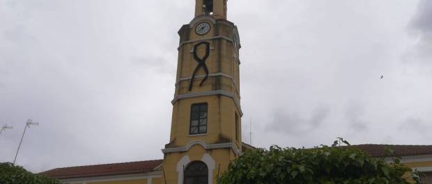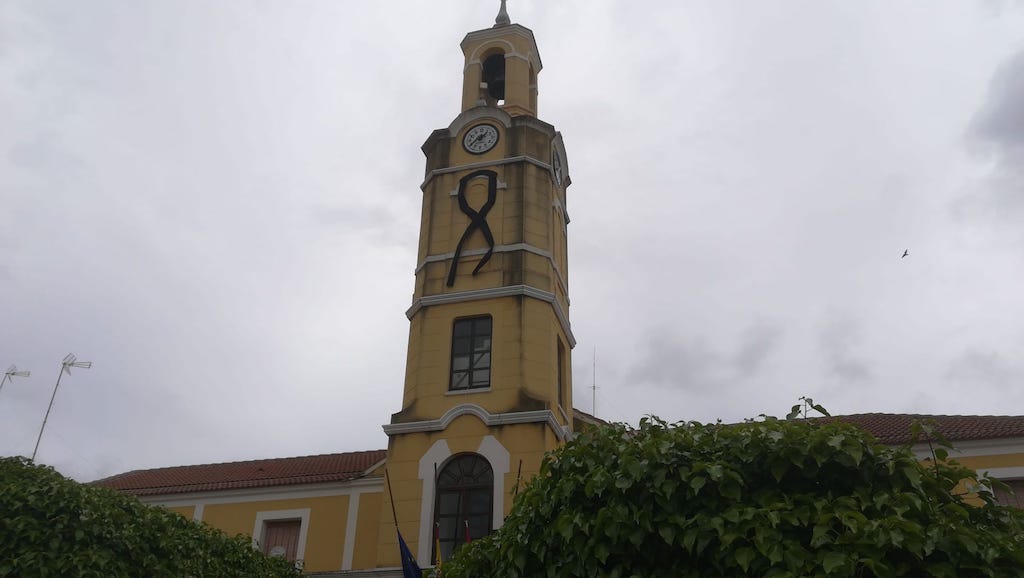 El Ayuntamiento de Malagón ha colocado, en la fachada principal del edificio consistorial, un enorme lazo negro en señal de luto por las víctimas del COVID-19.