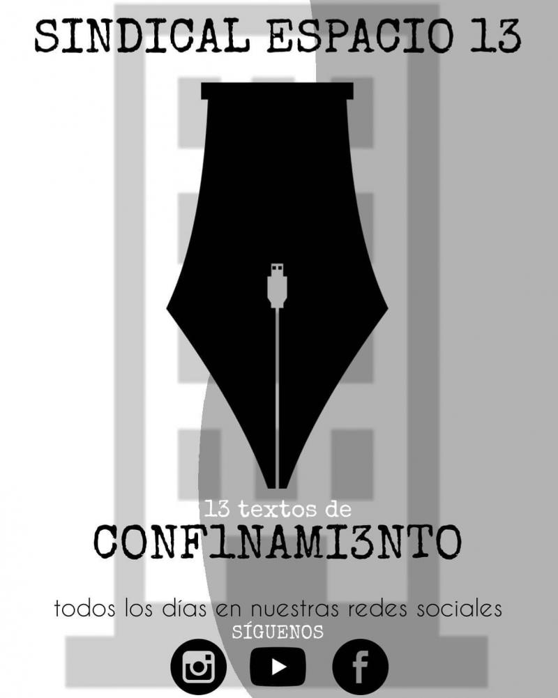 ‘CONF1NAMI3NTO’ será la nueva actividad con la que Sindical Espacio 13 seguirá ofreciendo contenido a través de sus redes sociales en las próximas semanas. Esta nueva iniciativa tendrá como protagonistas a un total de 13 escritores vinculados con Daimiel que, divididos en tres ramas, relatarán en sus textos la situación actual que se está viviendo, ofreciendo así un punto de vista particular y personal.