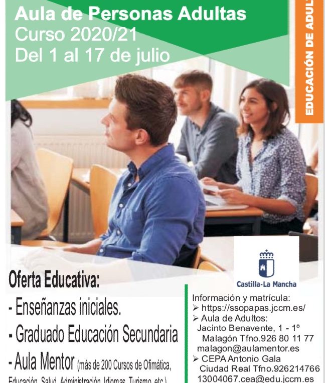 Malagón. Abierto el plazo de matrícula Educación de Adultos 2020/2021 Publicado en 30 junio, 2020 por alcaldesapiedecalle en CIUDAD REAL, Malagón, MUNICIPIOS, SOCIEDAD // 0 Comentarios Comparte esto: Compartir en X (Se abre en una ventana nueva) X Comparte en Facebook (Se abre en una ventana nueva) Facebook Me gusta Cargando... Relacionado