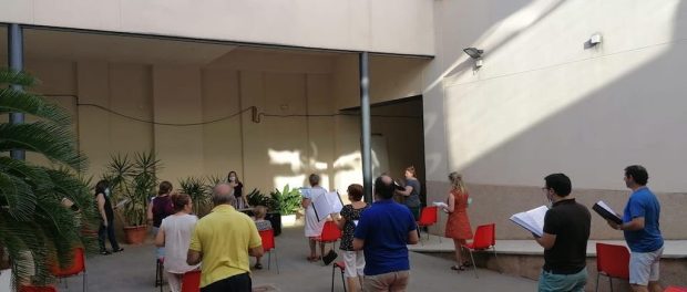 A pesar del calor se reunen, cumpliendo estrictamente con las medidas de seguridad necesarias, en el Centro Cultural para que pronto podamos disfrutar de sus actuaciones, de hecho en su perfil de facebook nos anuncian que se preparan para «algo muy especial»