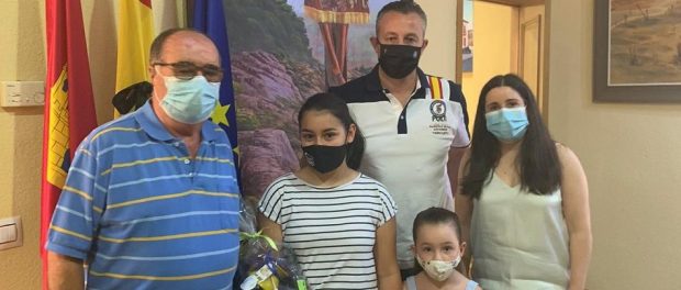El alcalde de Malagón y la Concejal de Juventud hacen entrega de un lote de productos de Malagón a la familia ganadora del concurso «Concurso de Escenas»