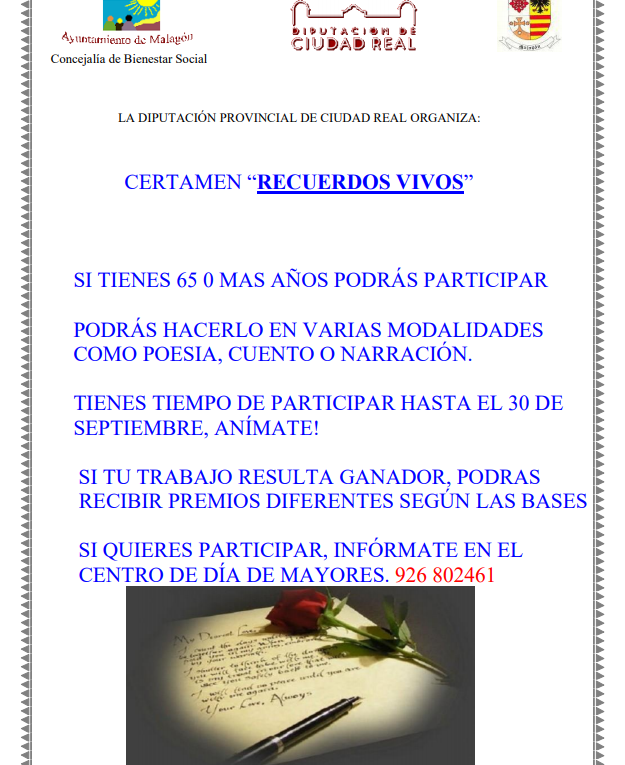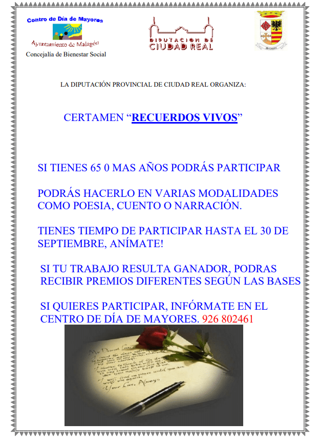 Malagón. CENTRO DE DÍA DE MAYORES: CONCURSO «RECUERDOS VIVOS» Publicado en 13 agosto, 2020 por alcaldesapiedecalle en CIUDAD REAL, Malagón, MUNICIPIOS, SOCIEDAD // 0 Comentarios Comparte esto: Compartir en X (Se abre en una ventana nueva) X Comparte en Facebook (Se abre en una ventana nueva) Facebook Me gusta Cargando... Relacionado