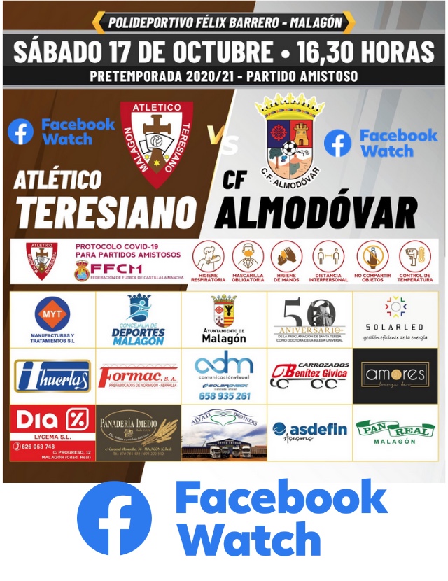 Malagón. El Atlético Teresiano – CF Almodóvar será emitido en toda España a través de Facebook watch