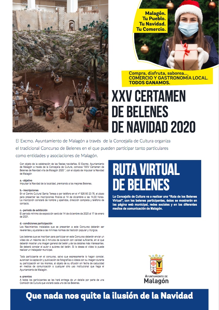 Malagón. Navidad 2020/2021: XXV Certamen de Belenes Publicado en 4 diciembre, 2020 por alcaldesapiedecalle en CIUDAD REAL, Malagón, MUNICIPIOS, SOCIEDAD // 0 Comentarios A continuación os ofrecemos el PDF del certamen de Belenes, para bajarlo tenéis que pulsar sobre el enlace de abajo Navidad 2020_Belenes Comparte esto: Compartir en X (Se abre en una ventana nueva) X Comparte en Facebook (Se abre en una ventana nueva) Facebook Me gusta Cargando... Relacionado