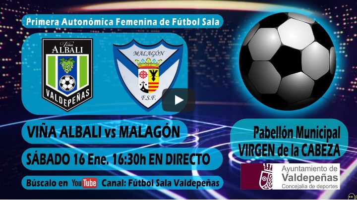 Fútbol sala femenino: Viña Albali – Malagón FSF Publicado en 15 enero, 2021 por alcaldesapiedecalle en CIUDAD REAL, DEPORTES, Malagón, MUNICIPIOS // 0 Comentarios Nuestras chicas juegan mañana a las 16:30 en Valdepeñas y podrás verlas a través de este enlace por youtube: ENLACE DIRECTO AL PARTIDO VIÑA ALBALI VS MALAGÓN FSF Comparte esto: Compartir en X (Se abre en una ventana nueva) X Comparte en Facebook (Se abre en una ventana nueva) Facebook Me gusta Cargando... Relacionado