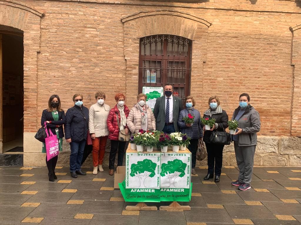 A la salida, nuestro alcalde ha querido felicitar a la directiva de la Asociación AFAMMER DE MALAGÓN, que también estaban celebrando este día, repartiendo una pequeña planta a todas las mujeres que se han acercado hasta la Cruz Verde