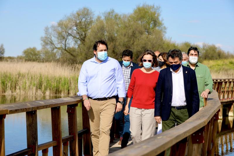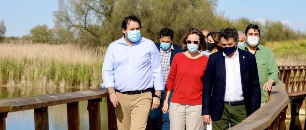 La portavoz del grupo parlamentario popular en el Congreso, Cuca Gamarra, y el presidente del partido en Castilla-La Mancha, Paco Núñez, visitaron ayer Las Tablas de Daimiel. Los acompañó el alcalde, Leopoldo Sierra, quien, tras la visita al humedal, volvió a reclamar un trasvase por la tubería a la llanura manchega para paliar la complicada situación del parque, exigiendo al gobierno central más implicación en la conservación y mantenimiento del Parque Nacional. En este sentido, el primer edil subrayó la importancia de buscar el equilibrio fundamental entre la naturaleza, agricultura y turismo.